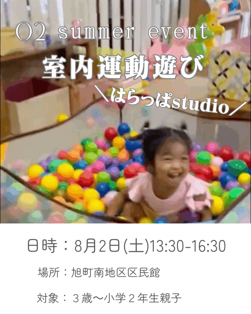夏イベント第2弾!「室内運動遊び・はらっぱstudio」のお知らせ